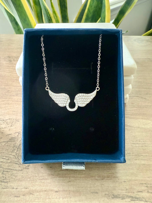 Studded AERO Angel Wings Pendant with Chain on Pure 925 silver